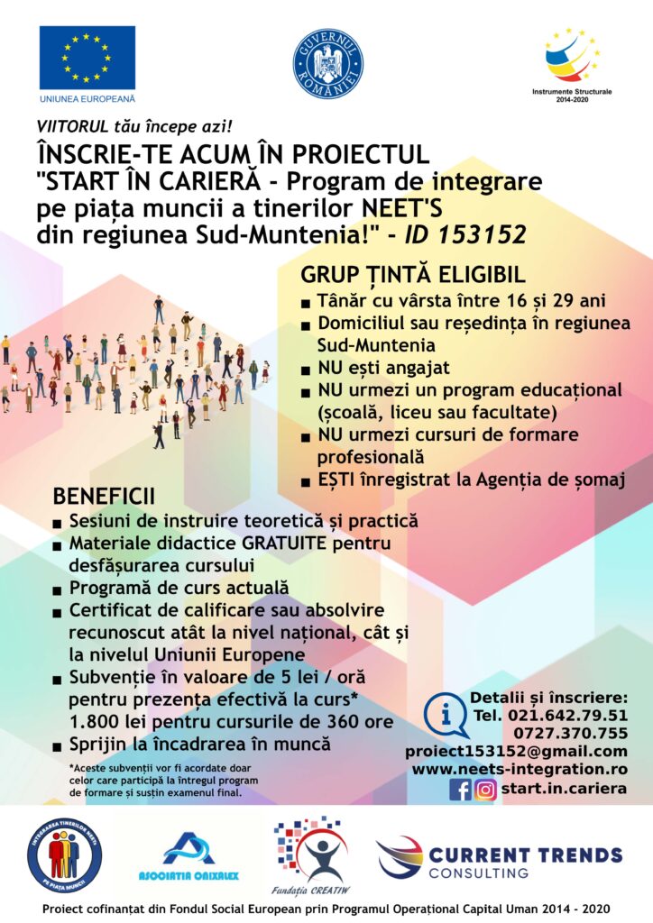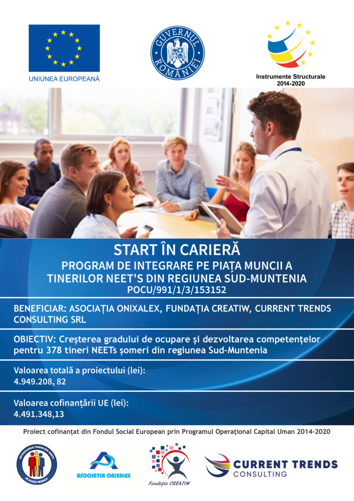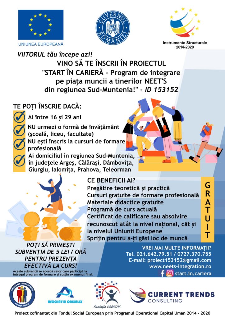 START ÎN CARIERA – PROGRAM DE INTEGRARE PE PIAȚA MUNCII A TINERILOR NEET’S DIN REGIUNEA SUD MUNTENIA!